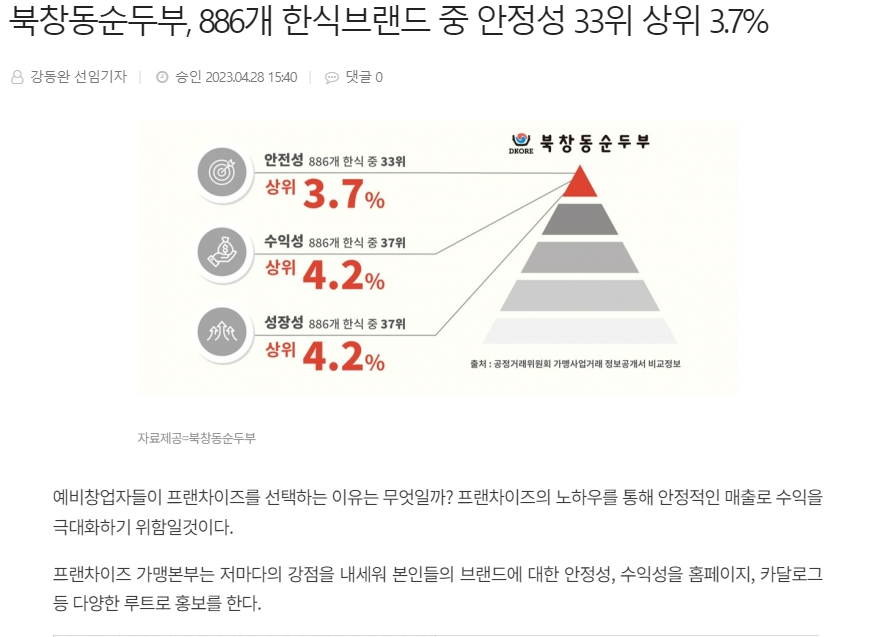 회원사 (주)디코레 북창동순두부가 2024 가맹하고 싶은 프랜차이즈 300에 선정되었다.